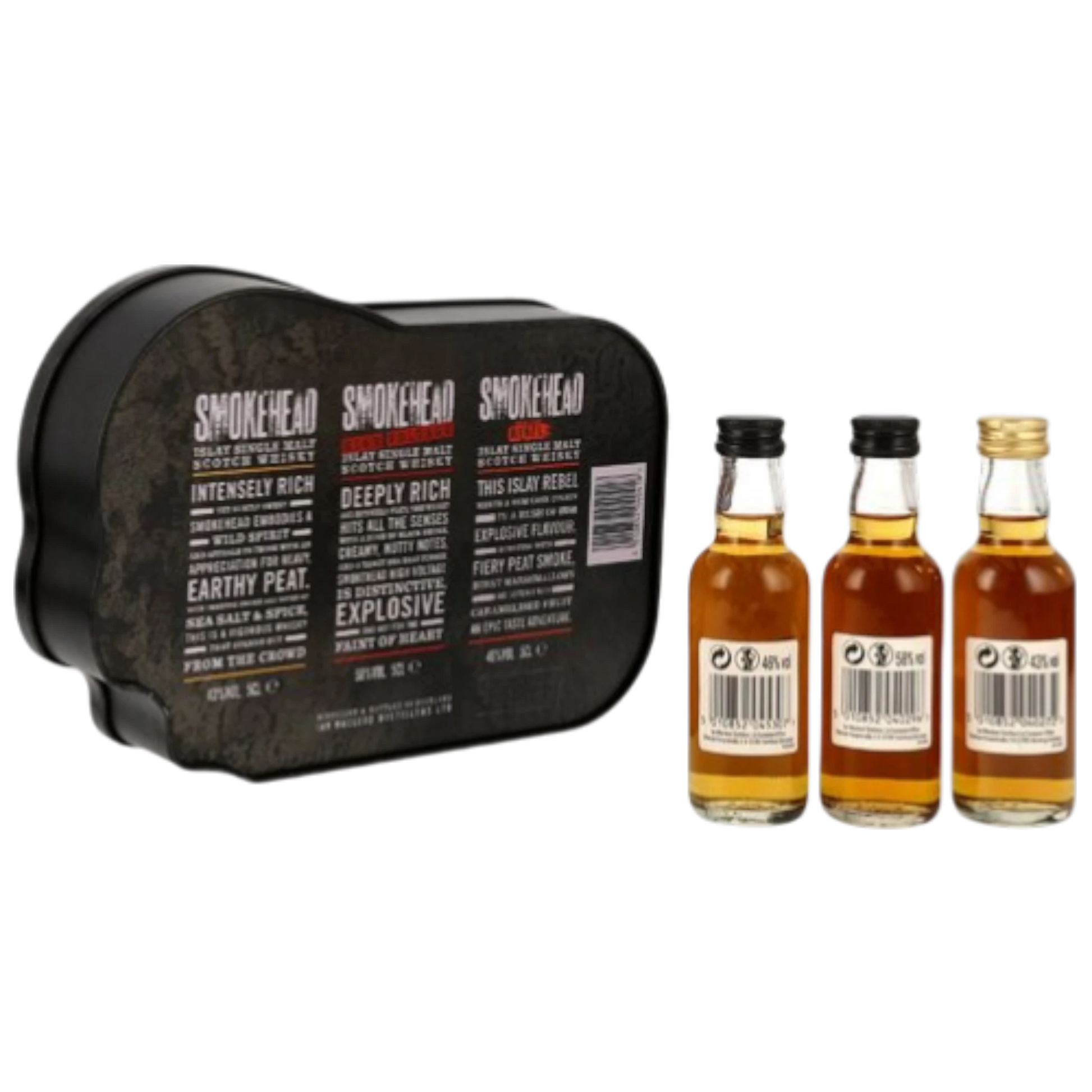 Die Smokehead Mini Collection bietet eine kompakte und spannende Auswahl aus dem rauchigen Whisky-Universum von Smokehead. In drei Mini-Flaschen à 0,05 l enthält dieses Set verschiedene Ausdrucksformen des charakterstarken Islay Single Malts – ideal zum Kennenlernen, Verschenken oder als Begleiter für Tastings unterwegs.